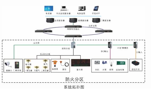 环境设备监控系统:在地下综合管廊放置可燃气体及有毒气体检测报警器、液位仪表、温湿度仪表等各种传感器,通过控制主机将各种信号采集、存储、自控、上传,实现对地下综合管廊的环境监控。